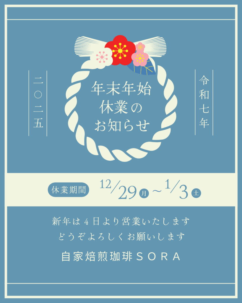 2025年12月29日(月)~2026年1月3日(土)の間、お休みをいただきます。